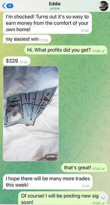 I've been in this group for about a month now and I can honestly say it's one of the best decisions I've ever made. The signals sent are amazing and I have made huge profits. I will be with Evelyn forever and I would recommend anyone to join this group if they want to make money!